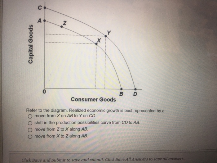 Refer to the above diagram. Realized economic growth is best represented by a: move from X on AB to Y on CD. The growth is a result of both new customer wins and growth in existing customer programs in all products. OCG revenue has exceeded pre-COVID levels for the past four quarters and is now up 19% in ...