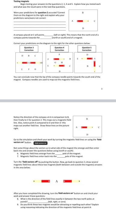 11. Among the following diagrams, which correctly illustrates a magnetic field? B) C) D) com pass 12. Two magnets are placed end to end. Which diagram correctly illustrates the magnetic fields around these magnets? B) 13. A magnet creates what is known as a magnetic field. A compass can be used to show the magnetic field.