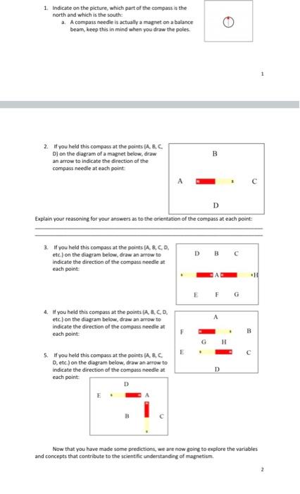 Transcribed image text: 2. If you held this compass at the points (A, B, C, D) on the diagram of a magnet below, draw an arrow to indicate the direction of the ...