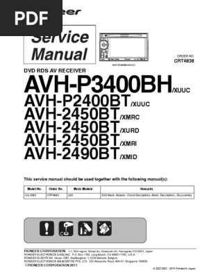 Pioneer AVH-P2400BT Pdf User Manuals. View online or download Pioneer AVH-P2400BT Owner's Manual.