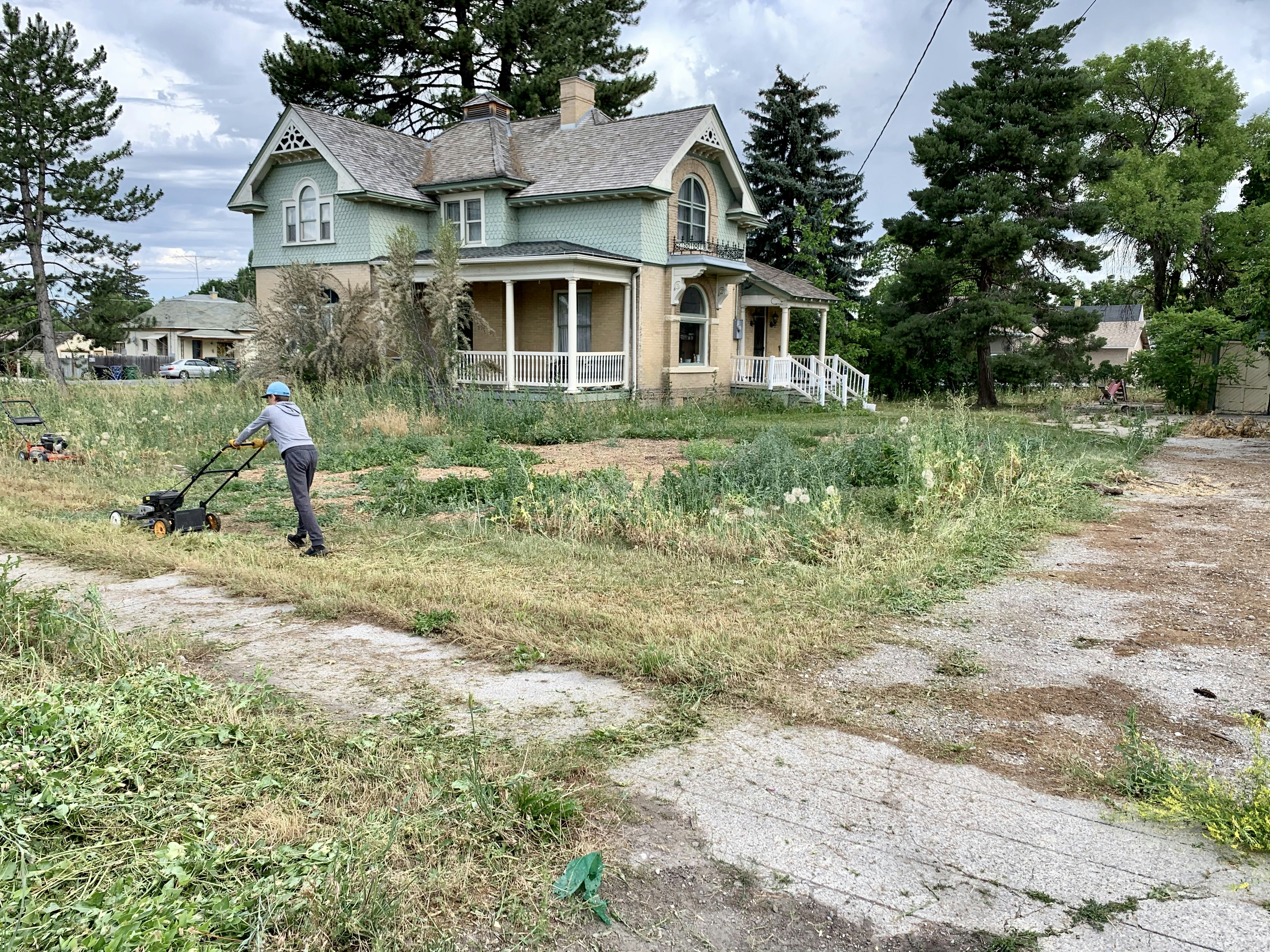 Mowing the lawn and weeds of an old historic home in Smithfield Utah. Located at TK Secure Storage in Logan & Brigham City, Utah. www.tksecurestoragelogan.com www.tksecurestoragebc.com
