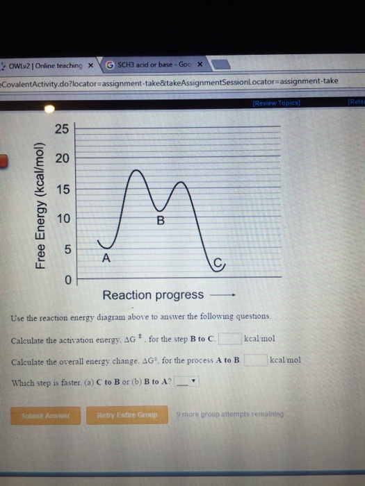 Name _____ Potential Energy Diagrams Use the following potential energy diagram to answer the questions below. 1. Is the overall reaction as shown exothermic or endothermic?_____ 2. What is the activation energyfor the forward reaction?_____ 3. # Why is A Level Chemistry So Hard? If you are taking A Level Chemistry, you will probably agree, like most students, that A Level H2 Chemistry is difficult and you have good reasons to do so. The concepts are complex and involve much memory work. There is a steep increase in the learning curve. This is only natural. Having now graduated from the top 20% of the O Level cohort, the syllabus is now made much tougher to further differentiate among all of you. # Much Memory Work is Required C... Use the reaction energy diagram above to answer the following questions. Calculate the activation energy, ΔG, for the step A to B. kcal/mol. Calculate the overall energy change, ΔG°, for the process B to C. kcal/mol. Which step is faster, (a) A to B or (b) C to B. fullscreen Expand. Question: D to answer Use the energy diagram for the reaction A the questions. How many transition states are there in the reaction? transition states: ...