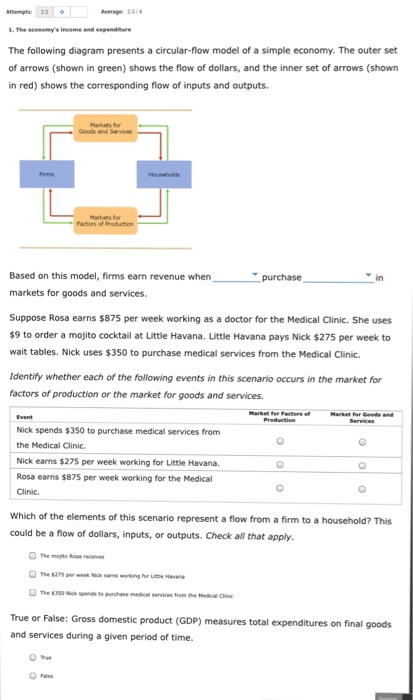 Robert L. Sexton · 2015 · Business & EconomicsIn a circular flow diagram, a. goods and services flow in a clockwise direction. b. goods and services flow in a ... Which of the following is true? a. The circular flow model of mixed economy states that there are four sectors in an economy. They are firms, households, the government, and the foreign sector.1 answer · Top answer: Correct Answer: Option B Households provide labor, land, and capital to the firm to run their businesses and in turn receive wages, rent, and profits...
