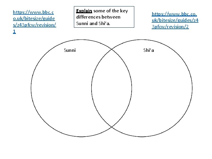 Sunni And Shia Venn Diagram - Wiring Diagrams Shia/Sunni, c. CE On the reverse side of this page, create a venn diagram that reflects the similarities and o A sample of venn diagram is shown below. Start studying Sunni or shia venn diagram.. Learn vocabulary, terms, and more with flashcards, games, and other study tools. Instructions: Copy the Venn Diagram into your notes.
